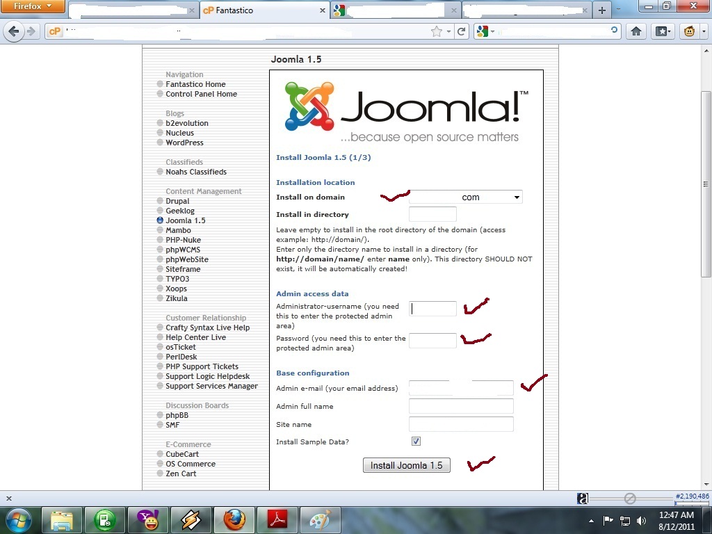 - Pilih joombla atau wordpress. Penulis memutuskan untuk menghubungkannya ke joombla