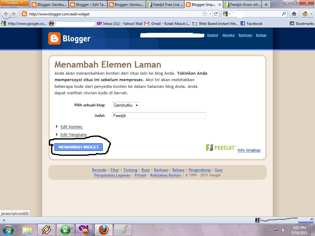 Cara memasang gadget Feedjit Blogspot